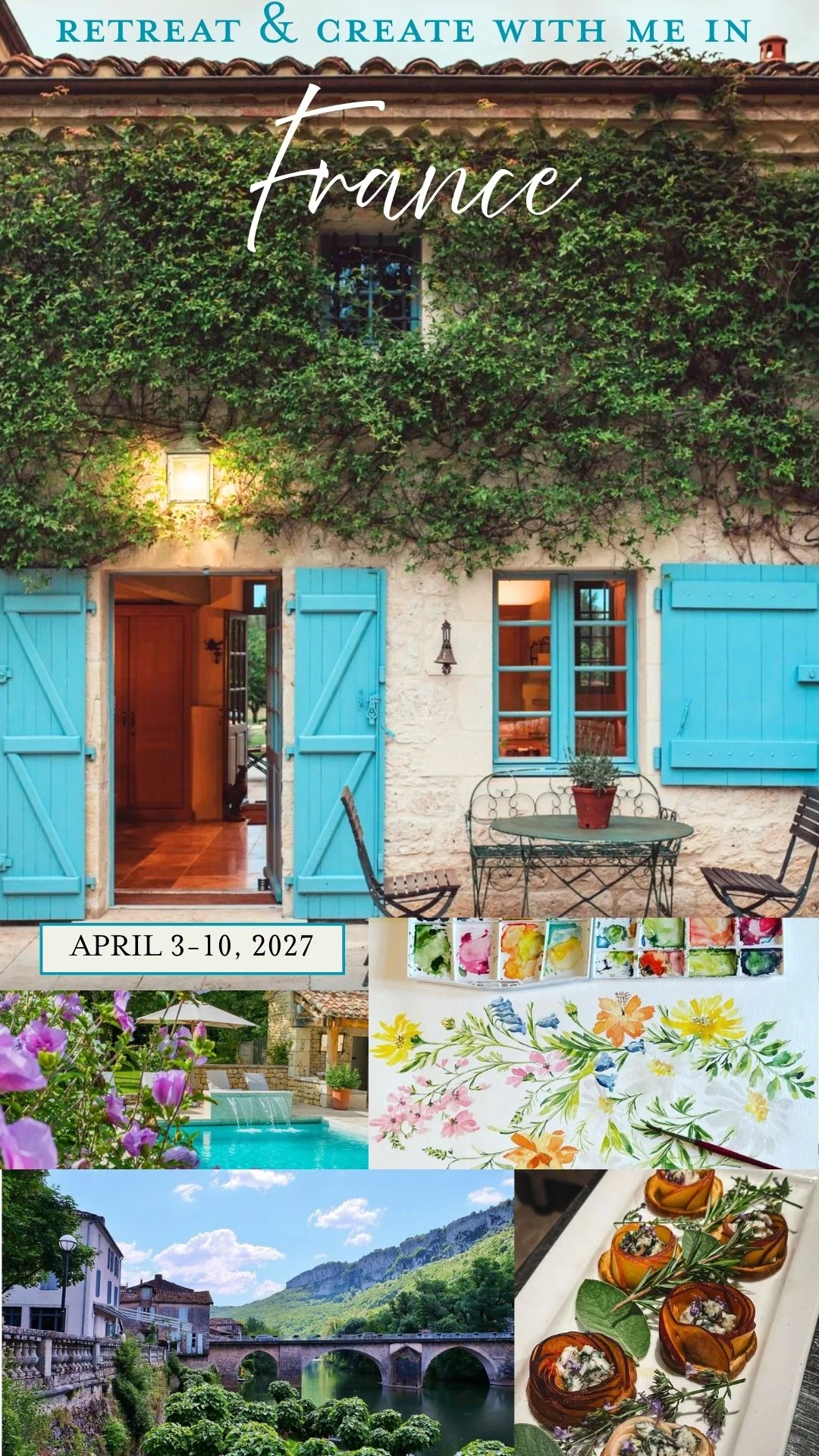 Super excited to be back in a different area of France and I can't wait to be inspired by nature + retreat & create, dine and & excursion with you April 3-10, 2027!