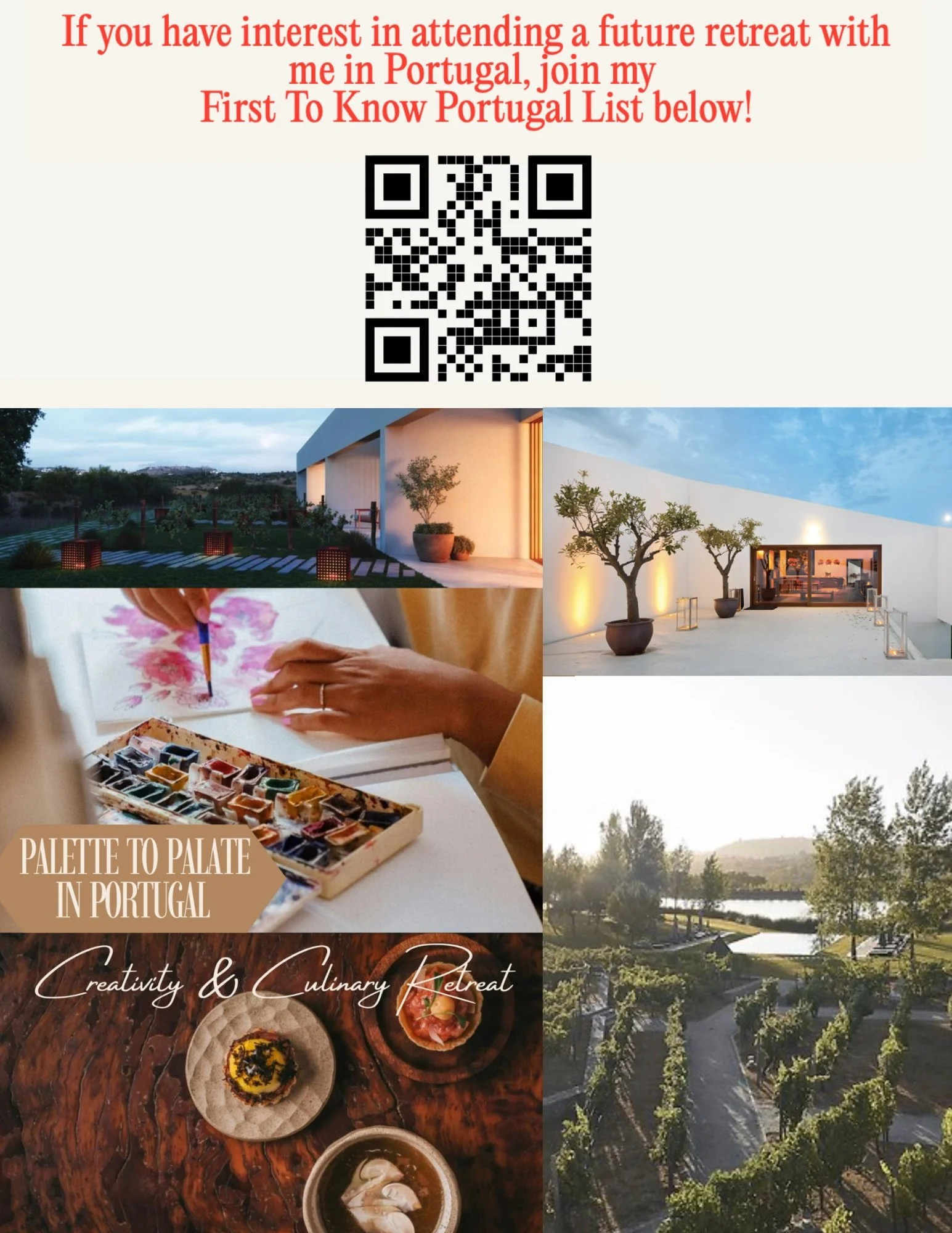 Immerse yourself in an unforgettable creative retreat focused on culinary and creative exploration hosted by Travel with Antonio- Bespoke Tours and global retreat leader/artist Caroline Simas. This week-long adventure offers women the important time and space to slow down, tune into the incredible beauty of southern Portugal, draw inspiration from nature, and discover/deepen your understanding and skills using watercolor and mixed media while enjoying curated Michelin star meals, wonderful wine and luxury accommodations. Every moment is curated to reignite your creativity, unleash the artist within, and invigorate your soul!